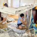 お部屋で新聞遊びをしました。剣を作ったり服や帽子、家を作るなどそれぞれ楽しみました。遊び終わった後はビリビリに破って新聞を被ってみたり上から降らせて遊びました。最後のお片付けでは袋の中に沢山詰めて片付けまで楽しみました!