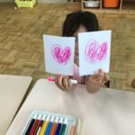 ひとり2枚のカードを配りそこには好きな絵を描いてもらいました。「2枚とも同じ絵を描くんだよ~」と伝えると どうしてか分からないみんな。カードのお絵描きが終わってグループになってゲームを始めると….あ!そう言う事なんだ!とルールを …
