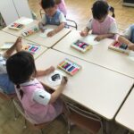 年少組はお絵描きをしました。どのクラスも絵の具を使い、様々な技法で楽しんで描きました。みんな個性たっぷりの素敵な絵が出来ました!これからも絵に表現する楽しさを知っていってほしいです。