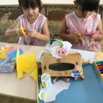 夏季保育が始まり、今日はヨーヨー作りをしました。好きな絵を描いて自分だけのオリジナルヨーヨーにしていきます。輪ゴムのつけ方が少し難しかったですが、諦めずに作っていきます。完成したヨーヨーを使ってお友だちと何秒つけるか競争をしたり、せーの!と …