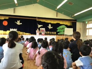 歯科衛生士の方が幼稚園に来てくださり、歯の大切さや磨き方について教えてくれました。歯を磨かないと虫歯になってしまうことや一日に甘いものを食べすぎてはいけないことなどたくさん知ることが出来ました。手を歯ブラシに見立てて歯磨きをしたり、うがいの練習をしました。