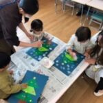 今日も元気いっぱいよちよちクラブがはじまりました。やきいもグーチーパーやクリスマスの手遊びもしました。 製作ではスタンプ遊びをしました。折り紙にのりをつけて重ねて貼るとクリスマスツリーの完成!そこにプチプチのスタンプを押すとわあ雪みたい。 …