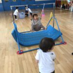 今日も元気によちよちクラブのお友だちが来てくれました。小ホールでマットや鉄棒、フープなどを出して運動遊びをしました。細い道を落ちない様に渡ったり、鉄棒にぶら下がったりトランポリンをしたりたくさん体を動かしました。お気に入りの所を見つけて何回 …