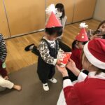 久しぶりのよちよちクラブでしたが、寒い中元気いっぱい遊びにきてくれました。綺麗に飾りを付けたお部屋でクリスマスのお帽子を作りました。お帽子をかぶって大きなお絵本を読んでもらったら、お隣のお部屋から♪リンリンリン♪・・・。サンタさんがみんなに …