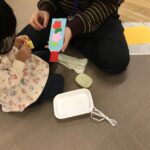 今日はみんなで双眼鏡を作りました。のりを上手に使って折り紙を貼ってシールを貼って出来上がり~!紐を首からかけてお部屋の探検をしました。♪どーこだどこだ?時計はどこだ?♪ みんなで双眼鏡を覗いてみーつけた!その後も、タンバリンと扇風機も探し …